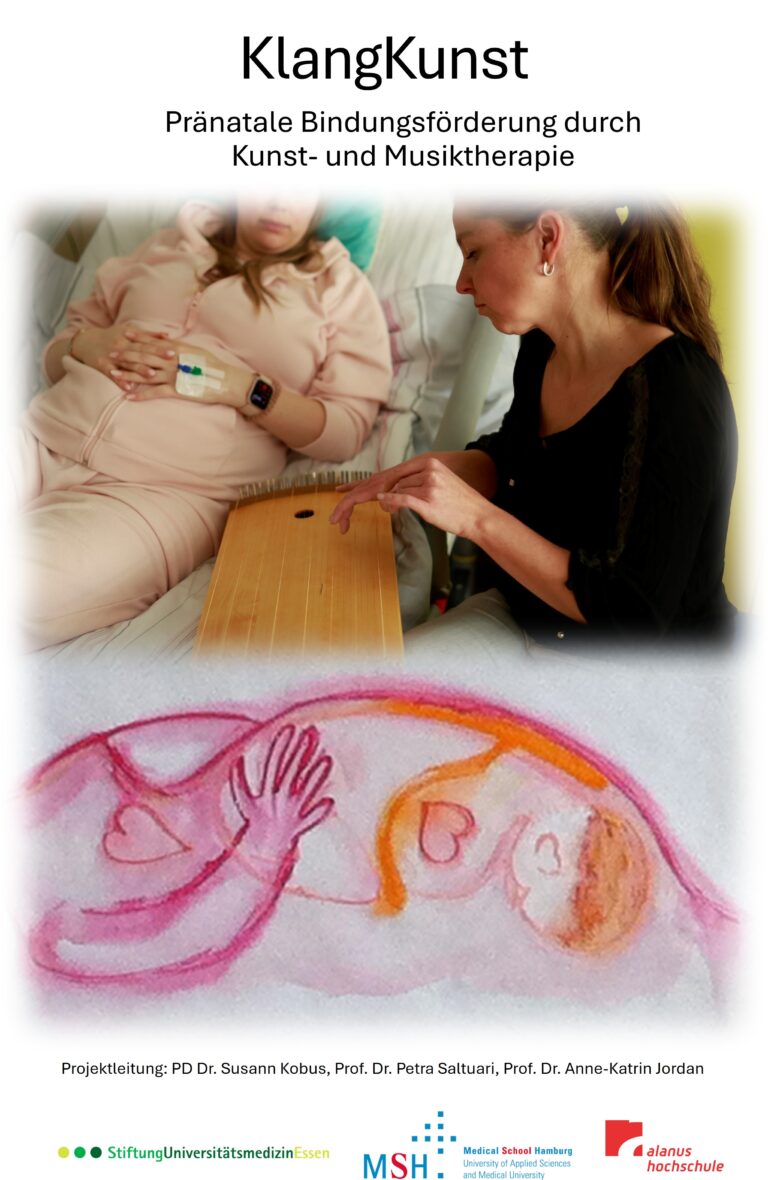 Ziel des Projektes ist die Entwicklung, Implementierung und Evaluation kombinierter Kunst- und Musiktherapie für Schwangere mit Komplikationen während einer stationären medizinischen Versorgung zur Unterstützung in der Bindung zu ihrem Ungeborenen und der Stressbelastung.